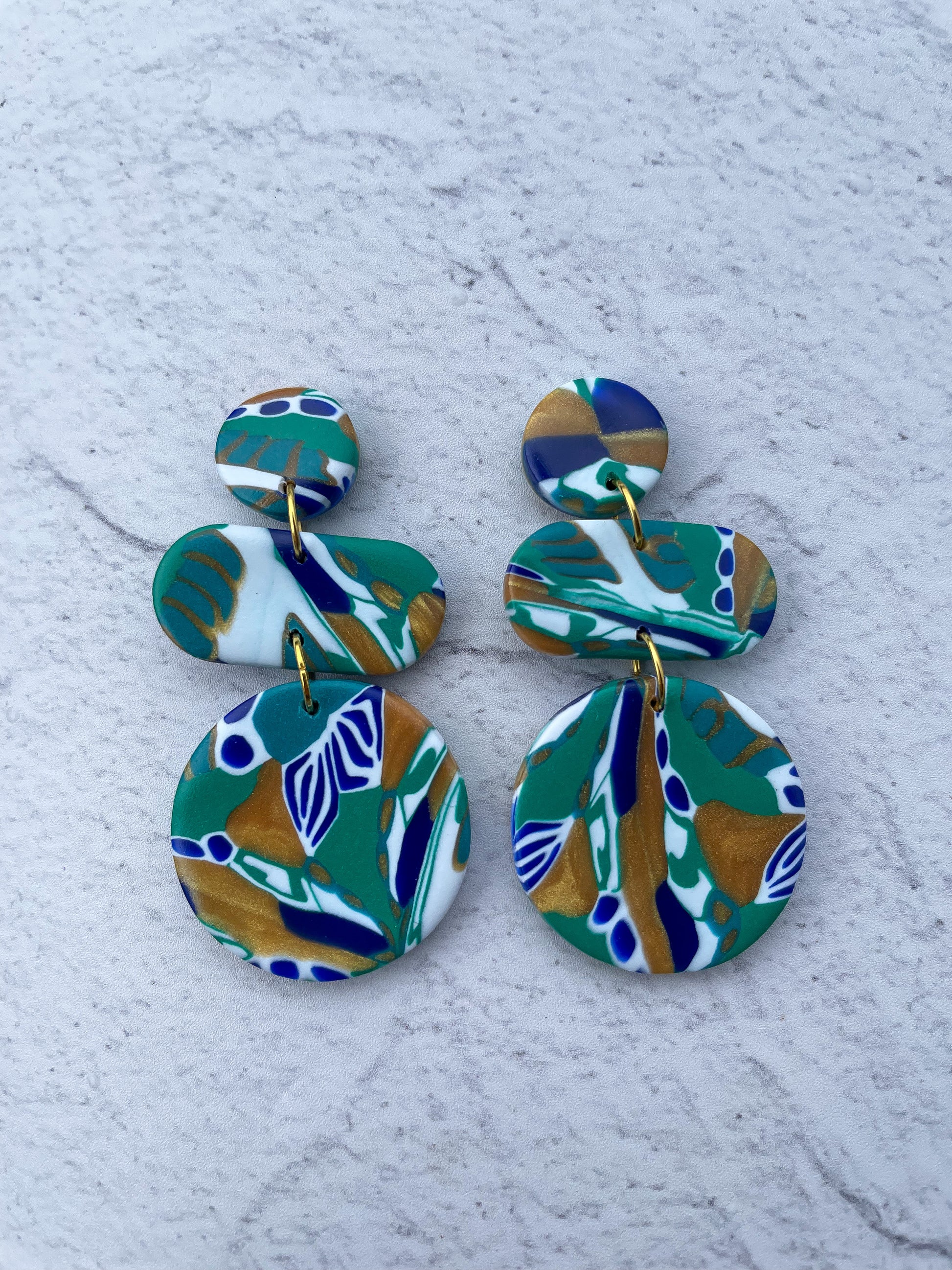 Gorgeous hand-crafted polymer clay earrings. Lightweight and incredibly stylish.